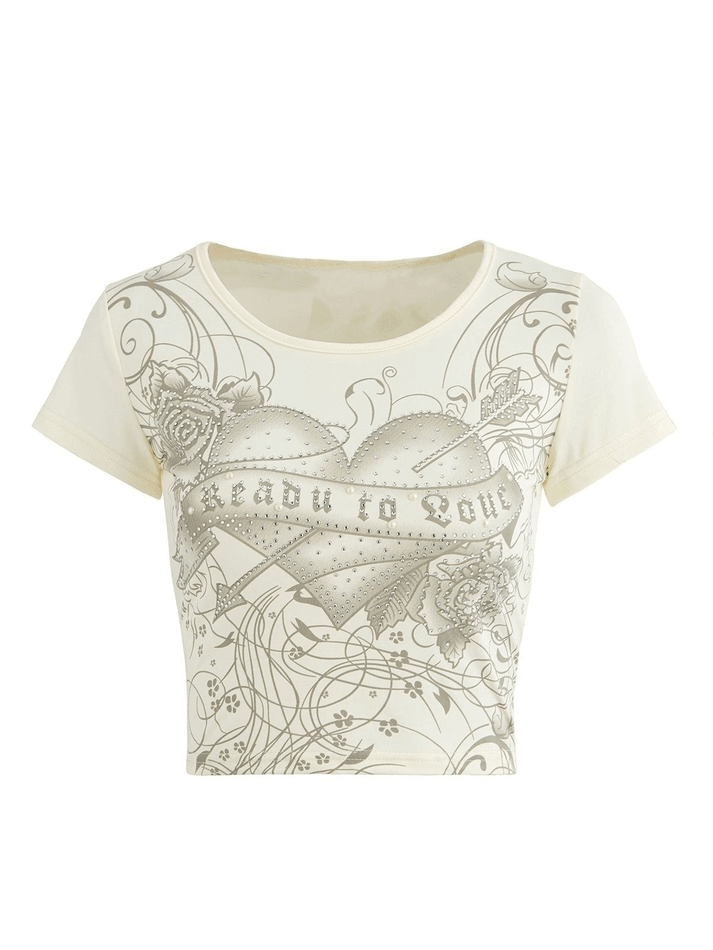 Kurzes Top mit Rosenherz und Strassverzierung