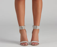 Glamouröser Look mit diesen strassbesetzten Stilettos für den perfekten Party-Look! Mit mandelförmiger Spitze, Knöchelriemen mit Reißverschluss und Chrom-Finish. Vervollständigen Sie den Look mit einem luxuriösen Samtkleid und Creolen.