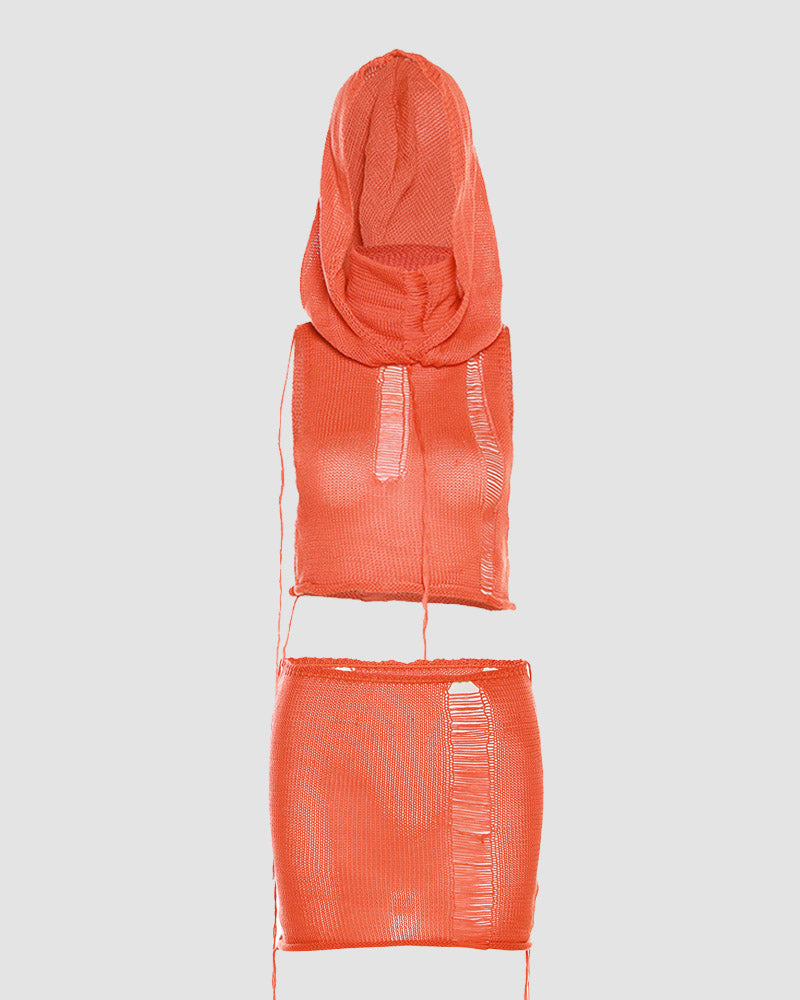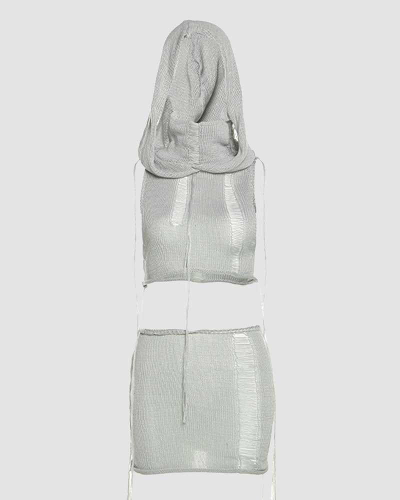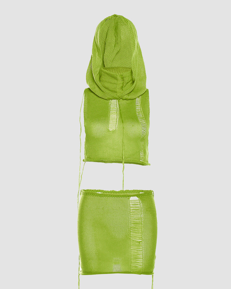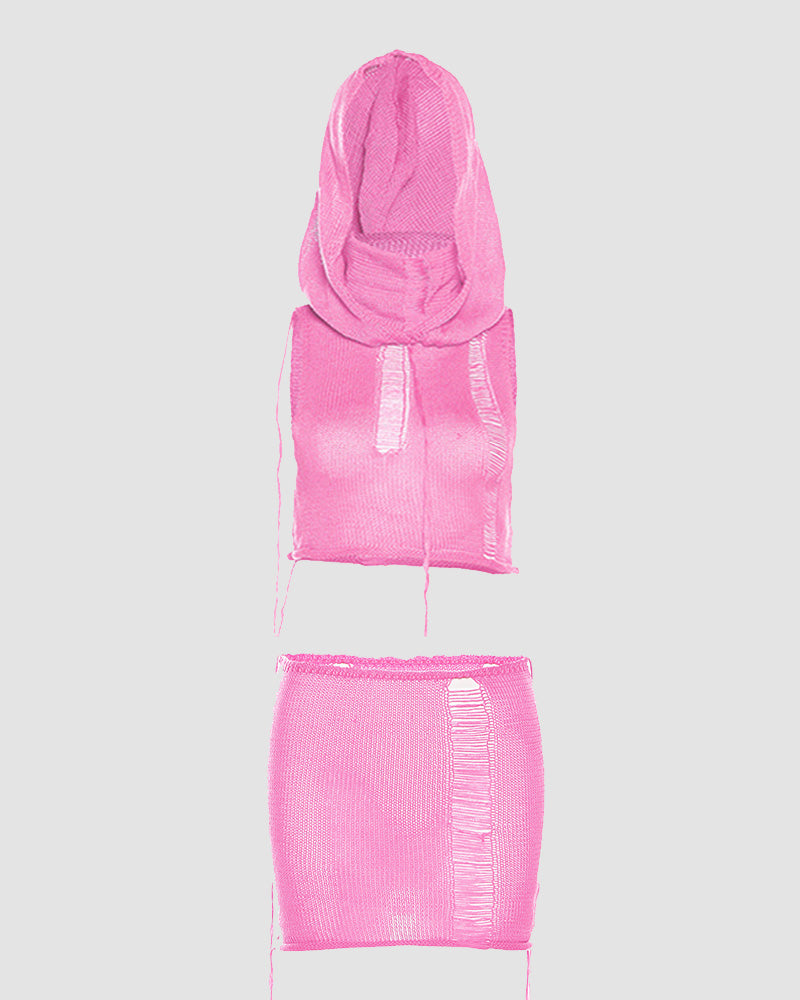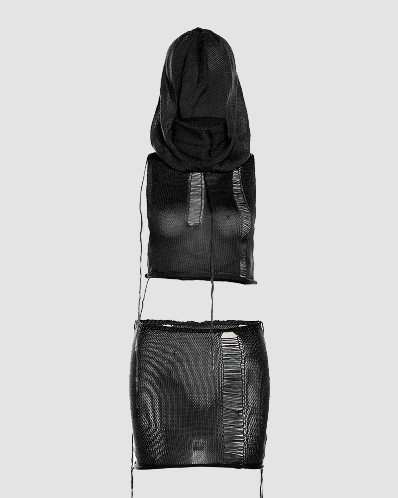 Details : Gestricktes Kombiset im Cyberpunk -Stil . Wird mit einem kurzen ärmellosen Hoodie und einem kurzen Rock geliefert.
