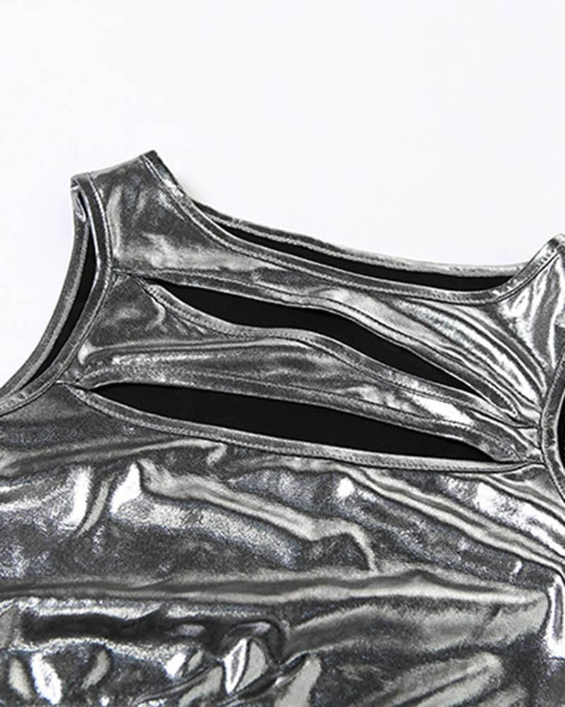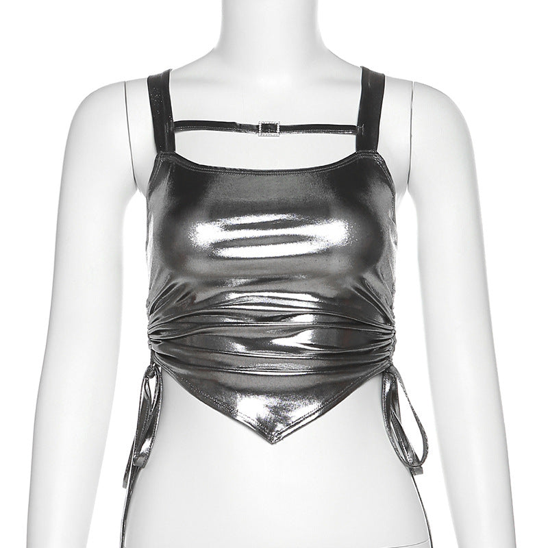 Details : Silbernes Cami-Top mit ausgeschnittenem Design