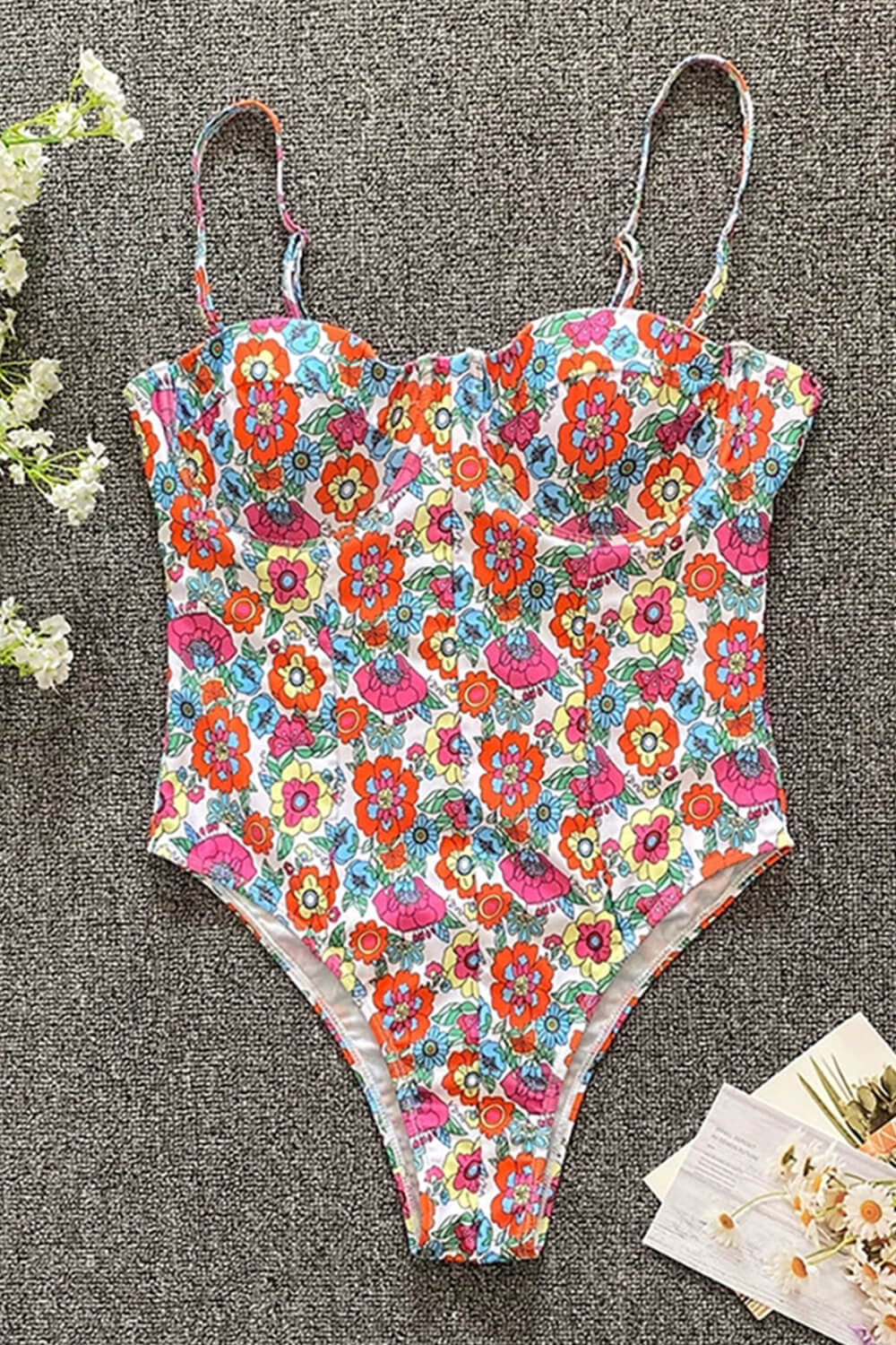 Einteiliger Badeanzug mit Bügel und Blumenmuster im Frühlingsstil