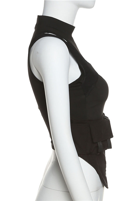 Details : Ärmelloses Oberteil mit Fronttaschen-Design