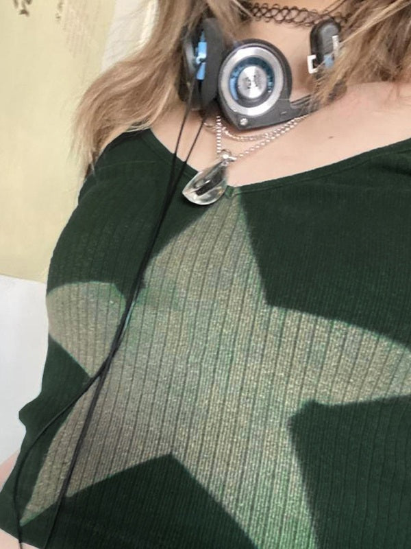 -Trendiges Design: Das Sternenmuster auf der Vorderseite dieses Oberteils ist perfekt für alle, die mit den neuesten Y2K- und Vintage-Trends Schritt halten möchten.