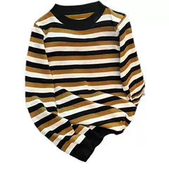 Gestreifter dünner lockerer Strickpullover mit O-Ausschnitt