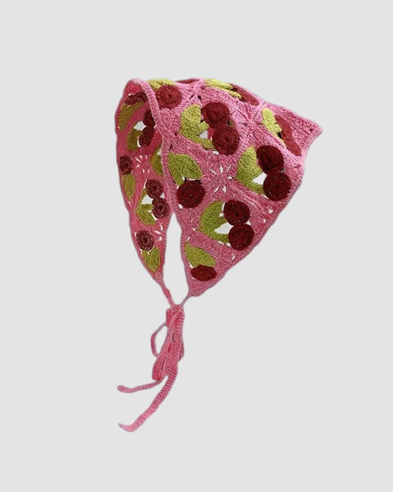 Details : Gehäkeltes Kopftuch mit Kirschmuster