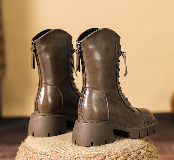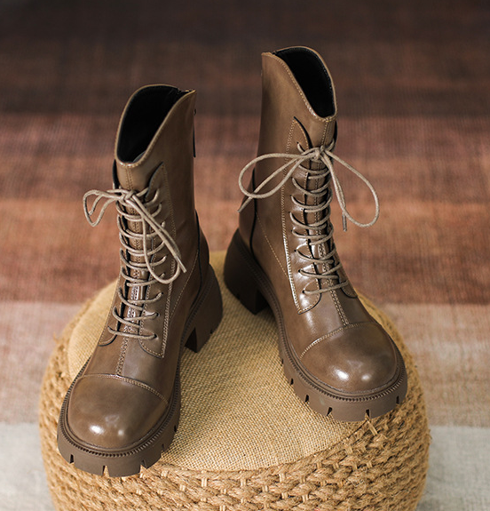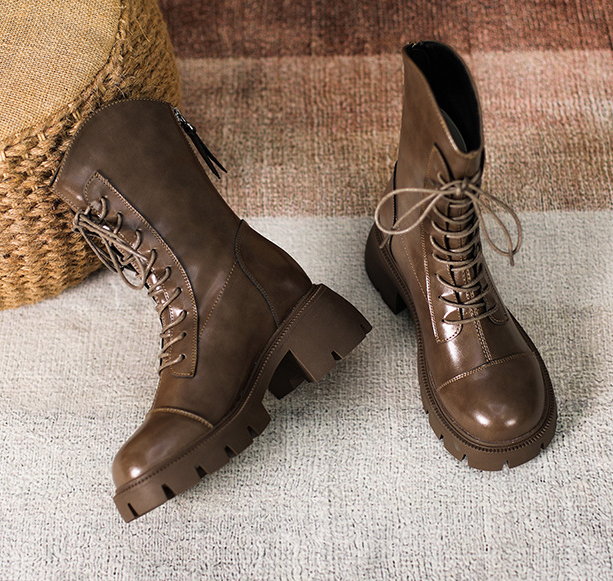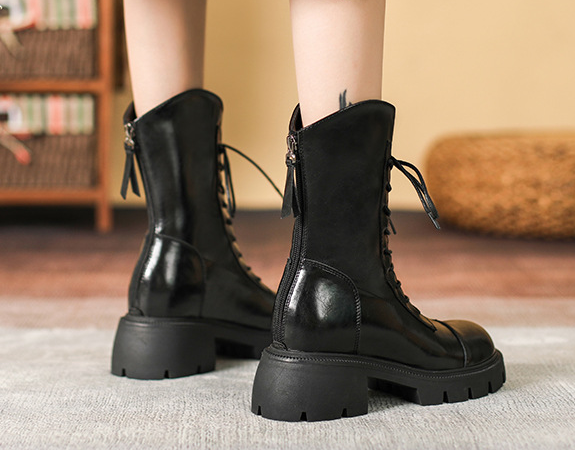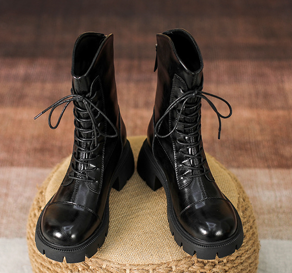 Mit diesen coolen Combat Boots bist du der absolute Trend-Fan. Sie haben eine runde Zehenpartie, eine Schnürung vorne, ein geripptes Socken-Design am Knöchel und eine klobige Plateausohle. Kombiniere sie mit einem kurzen Pullover und deiner Lieblingsjeans.