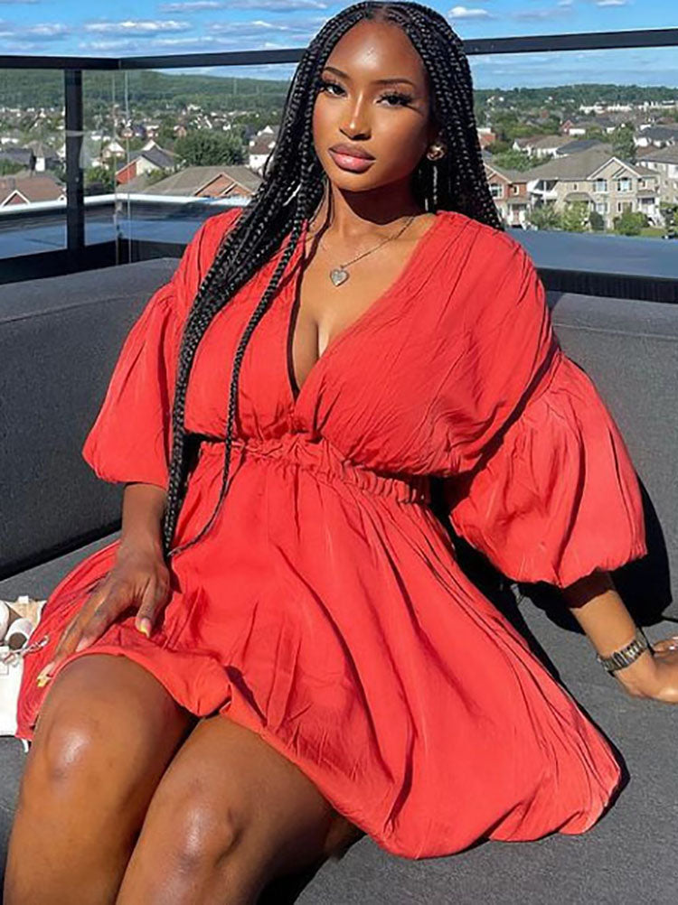 Minikleider mit V-Ausschnitt und Laternenärmeln