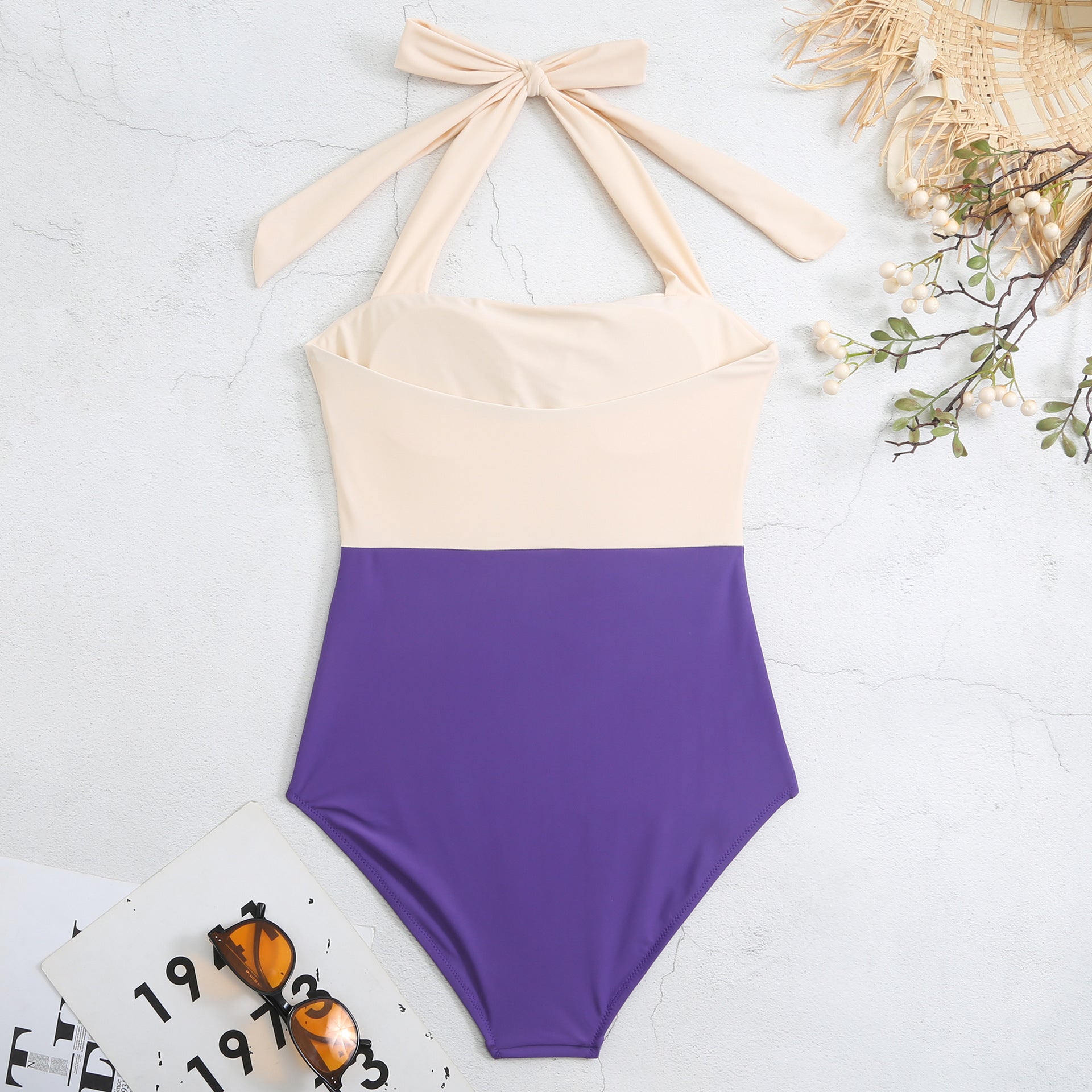 Product details Name: Women Bathing Suit Gender: Women Material: Polyester Collar: Halter Neck Sleeve length: Sleeveless Pattern: Contrast Color Size: S/M/L/XL