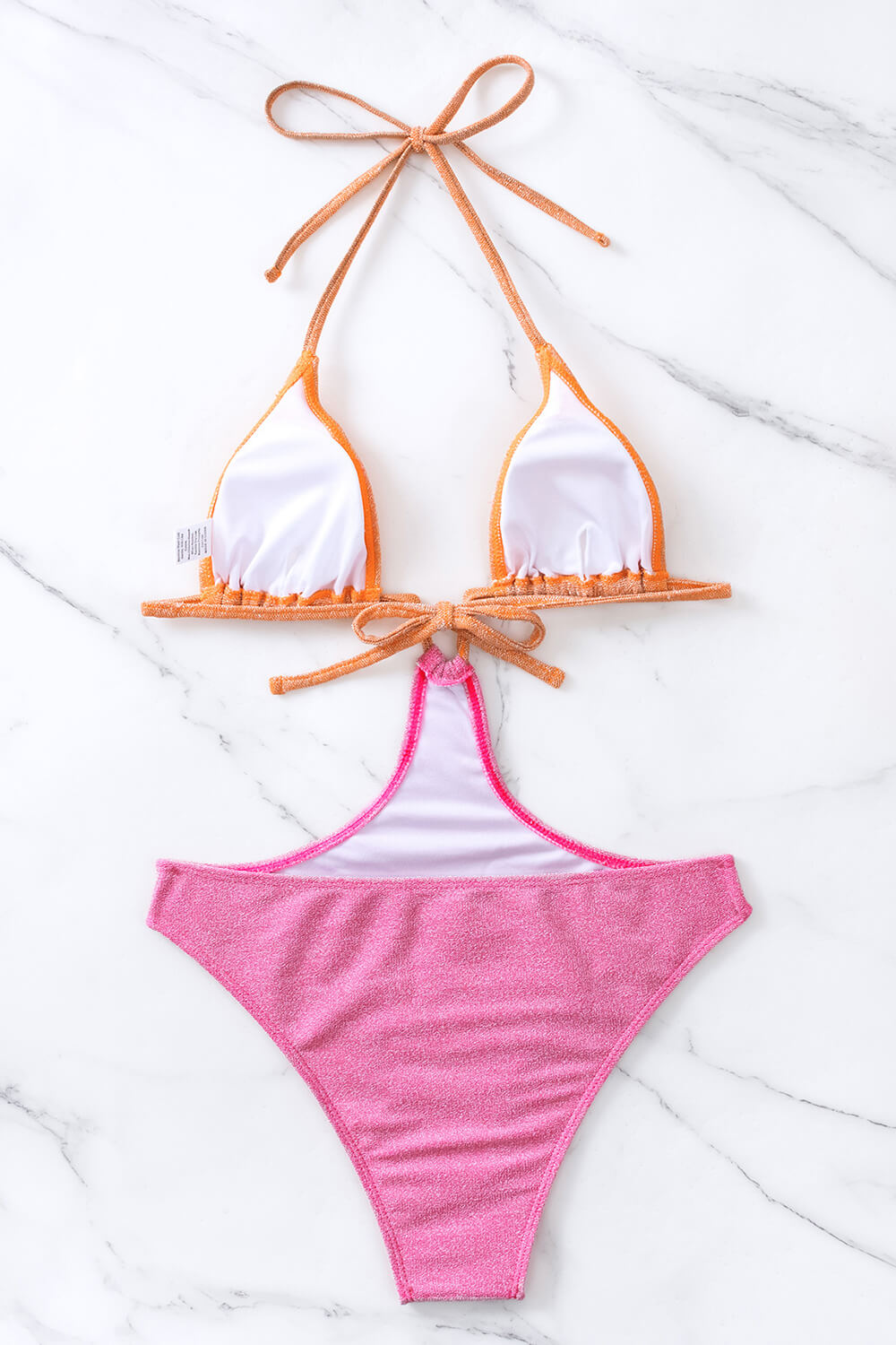 Colorblock Shimmer Cut-Out Halter One Piece Swimsuit