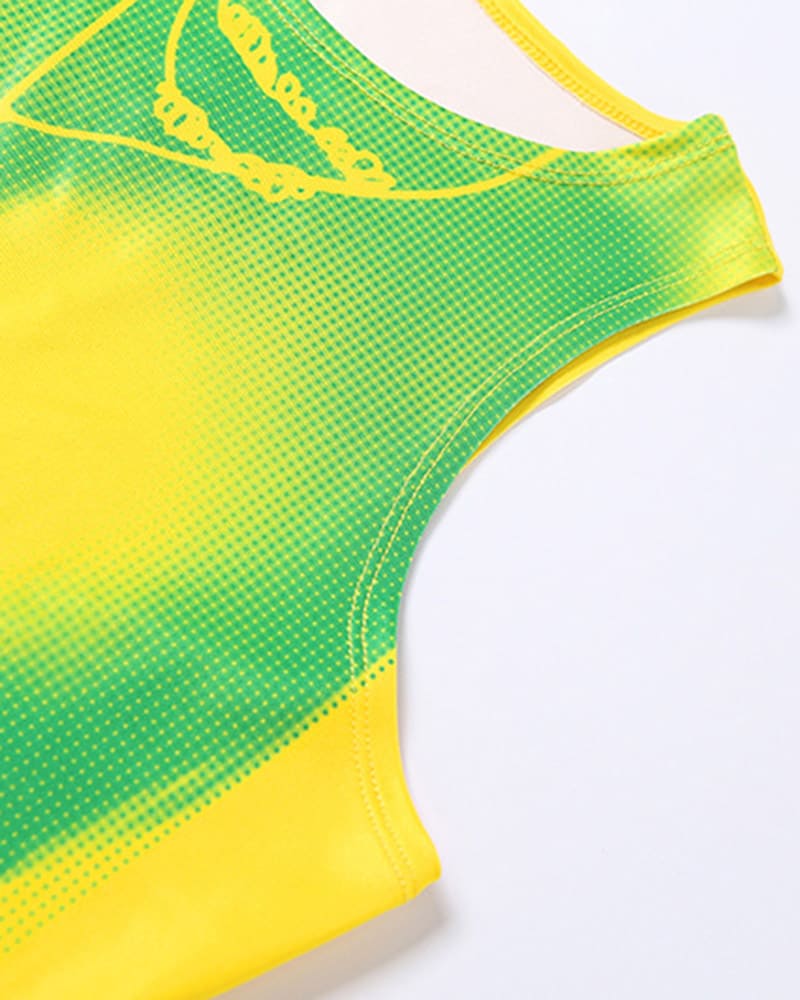 Details:Y2K-inspired Abstract Body Print Tank Top