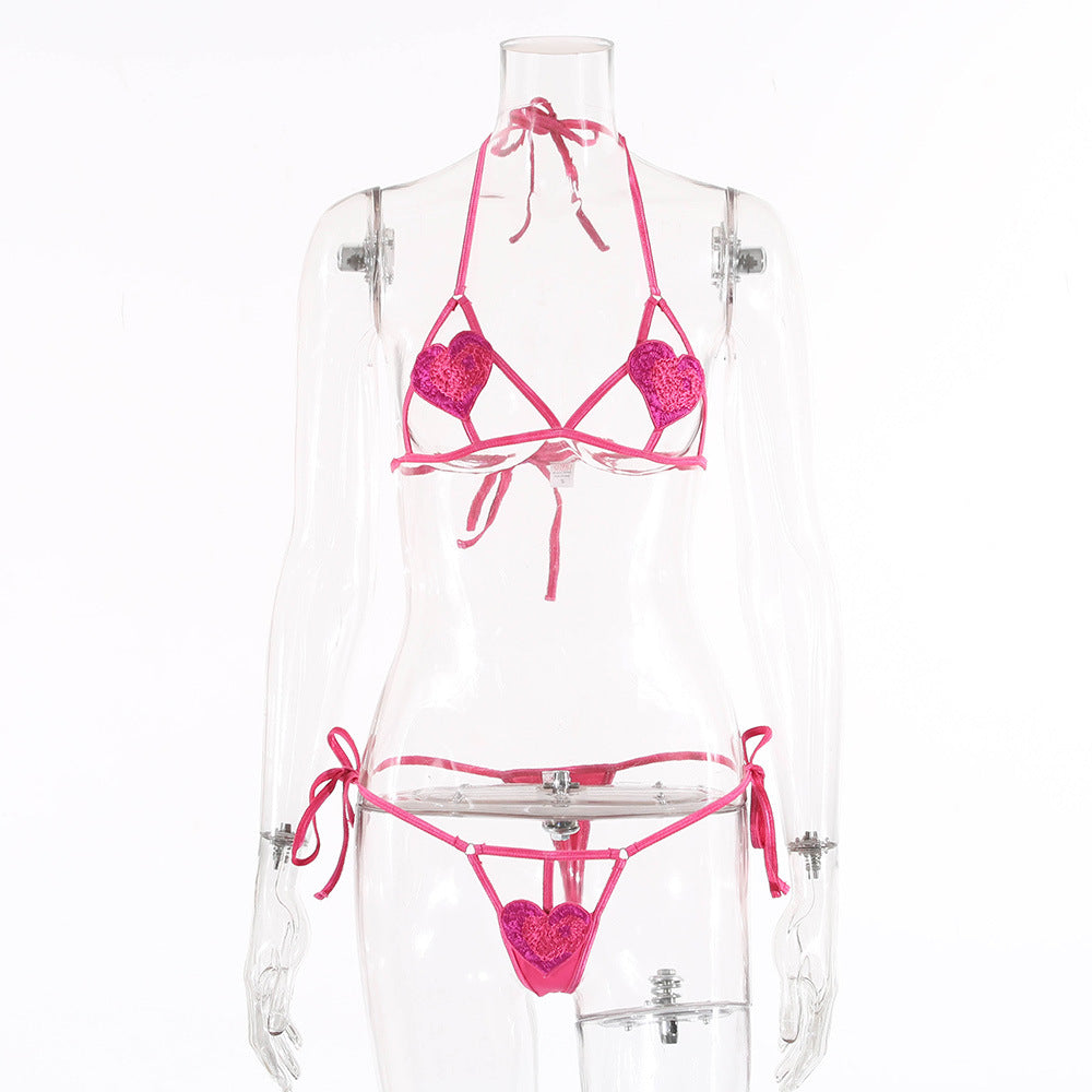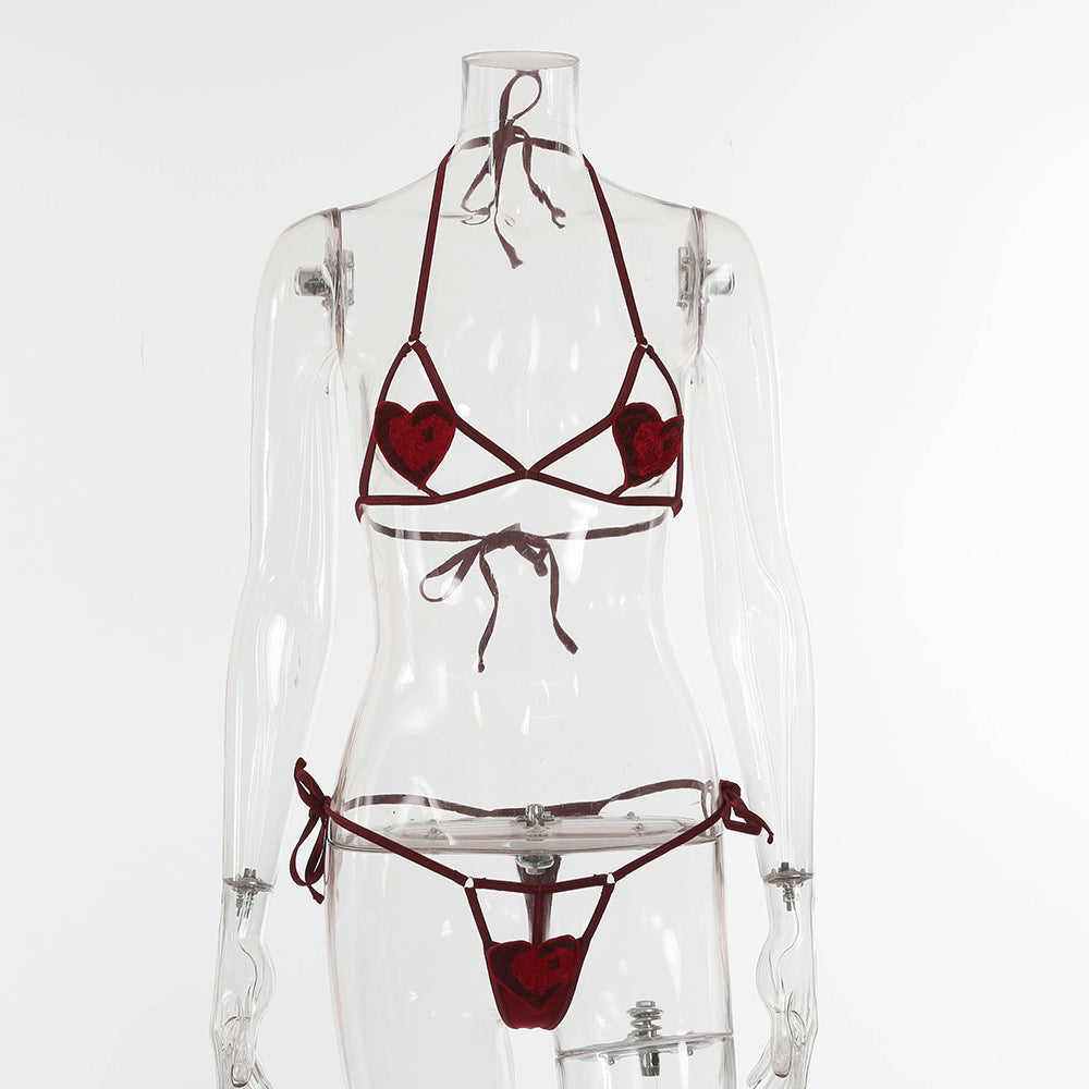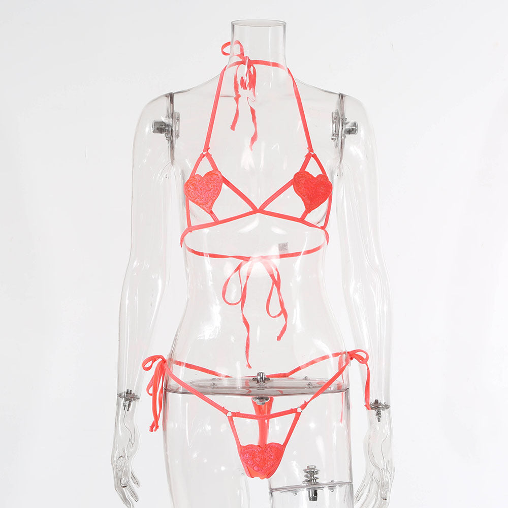 Multicolor Love Three-point Hollow Tie Sexy Lingerie Set