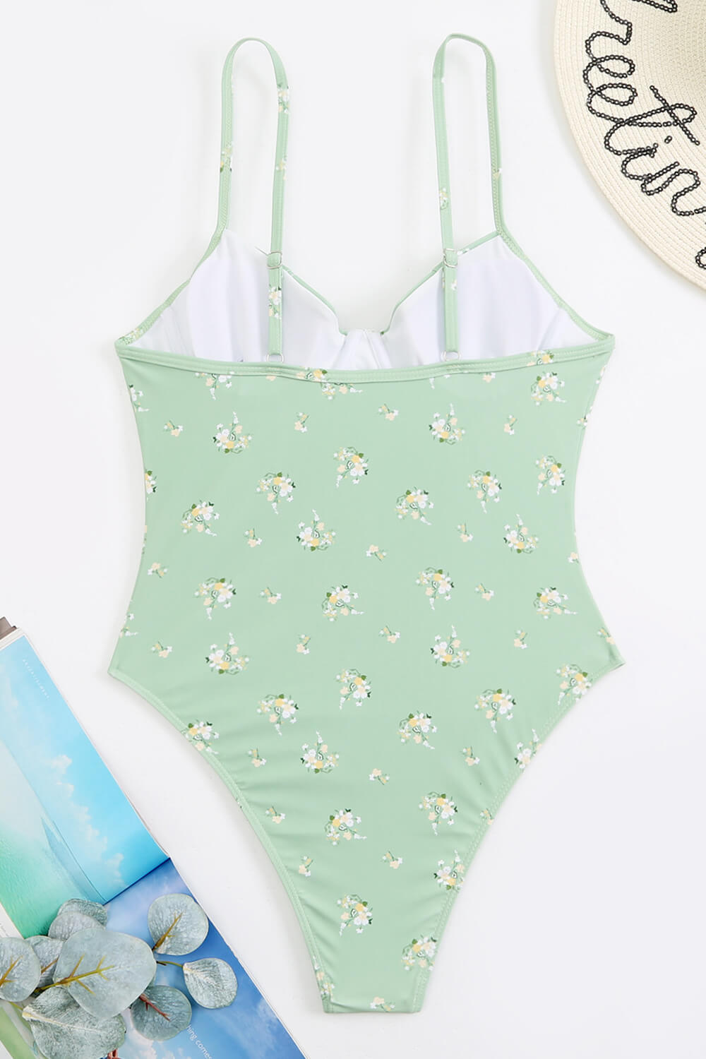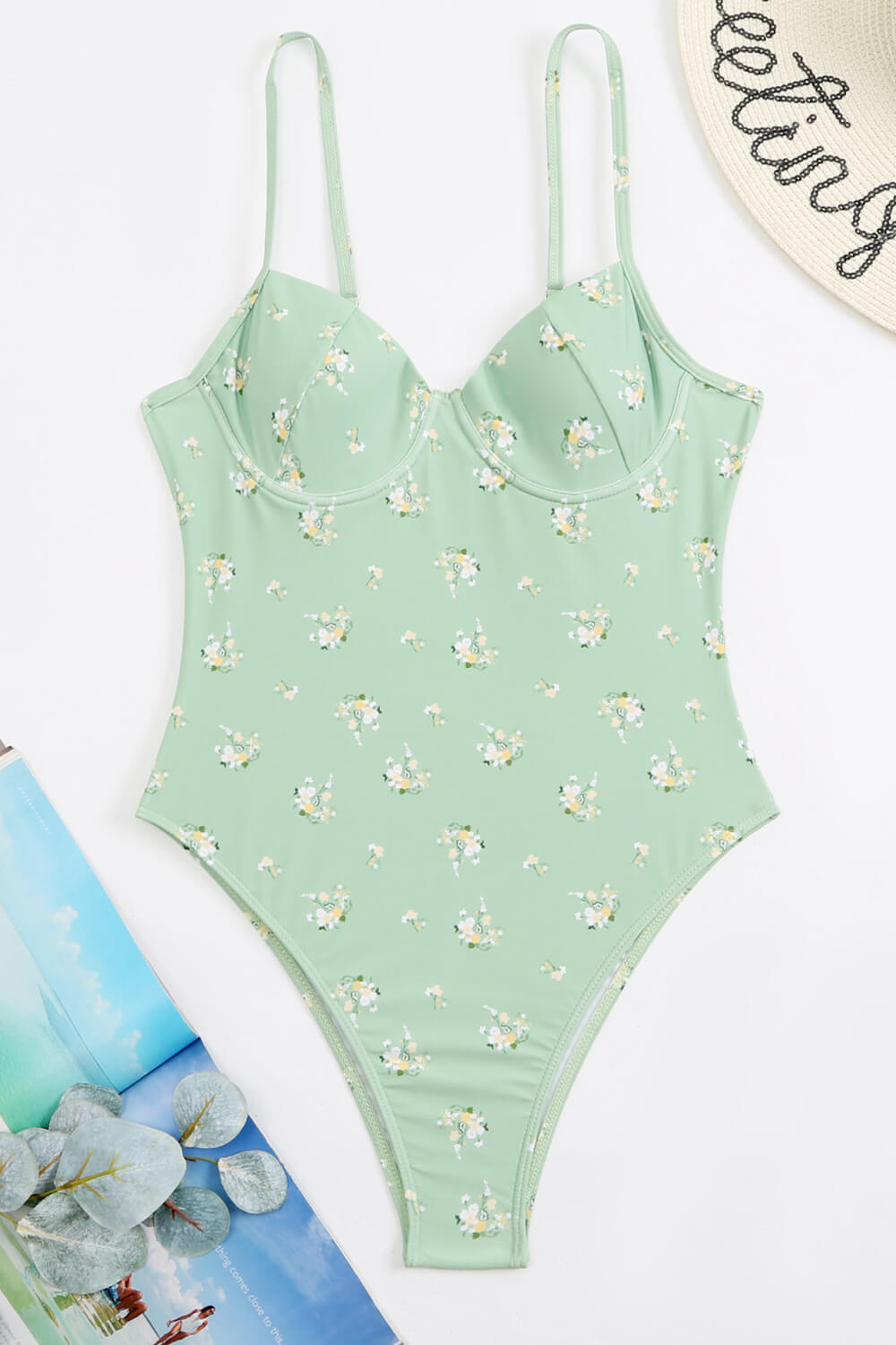 Olive Floral Print Underwired One Piece Swimsuit