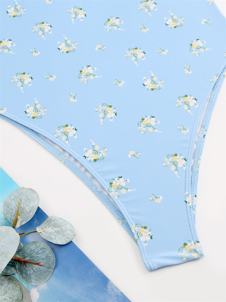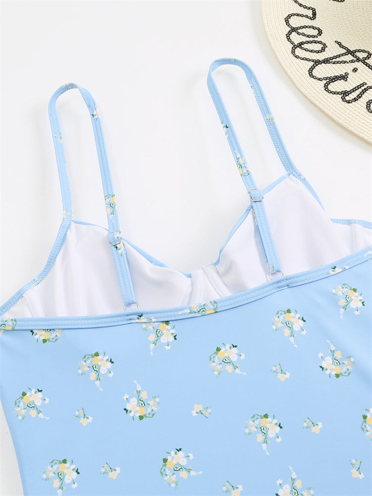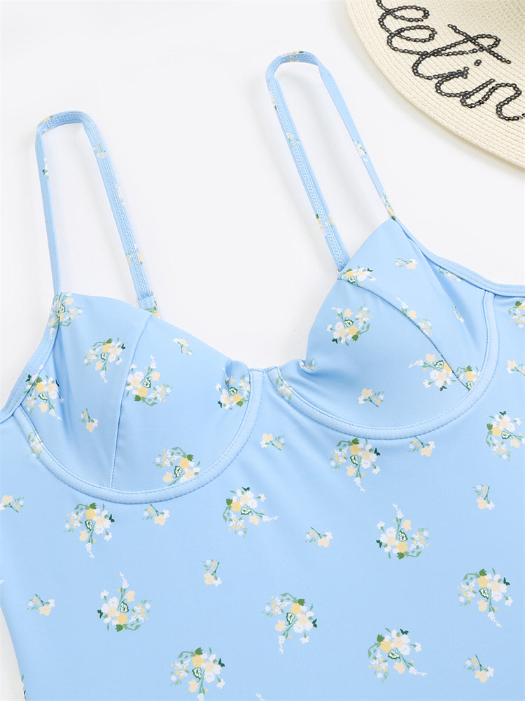 Olive Floral Print Underwired One Piece Swimsuit - Blue