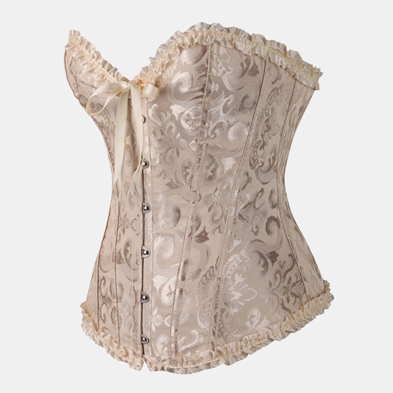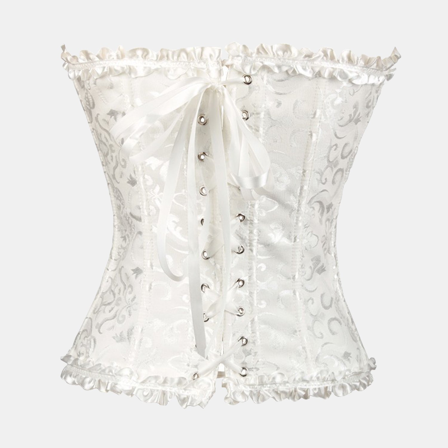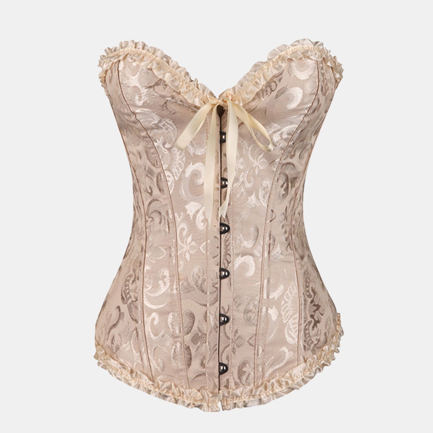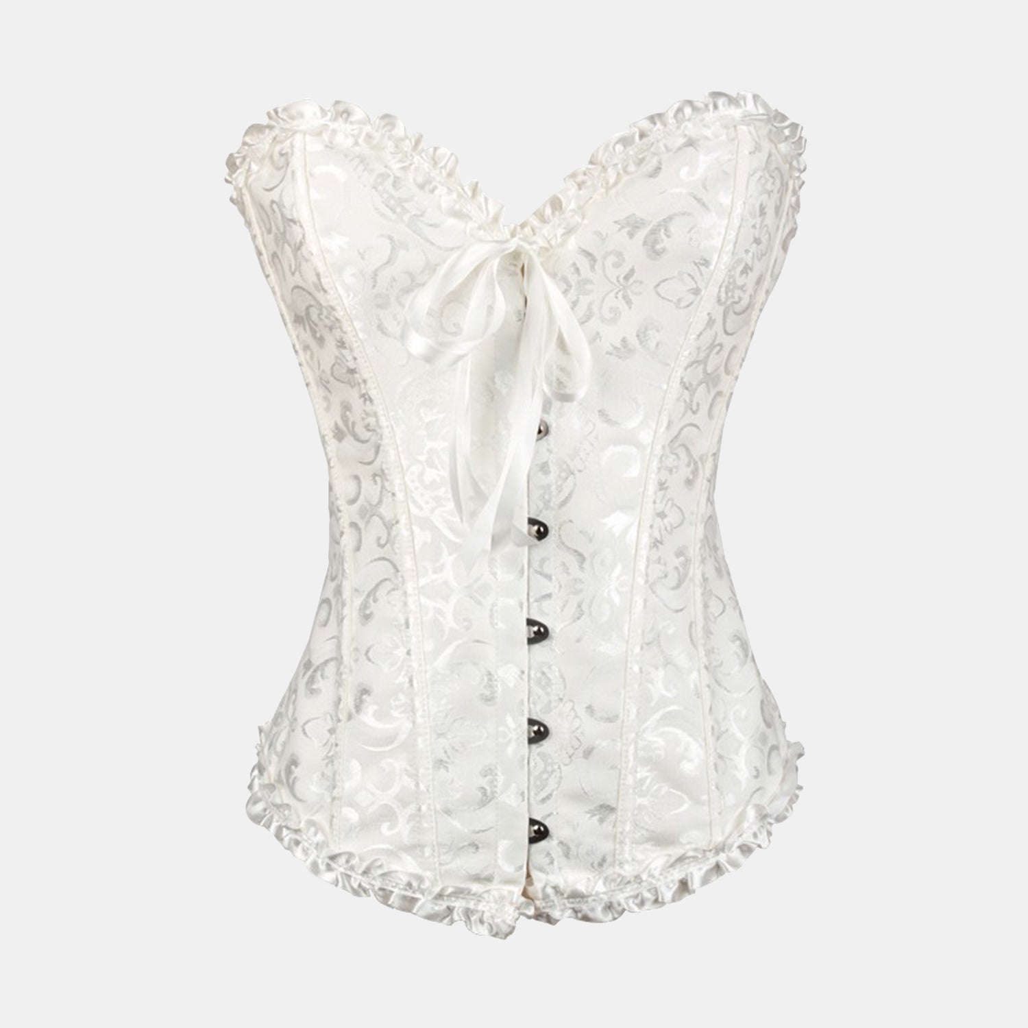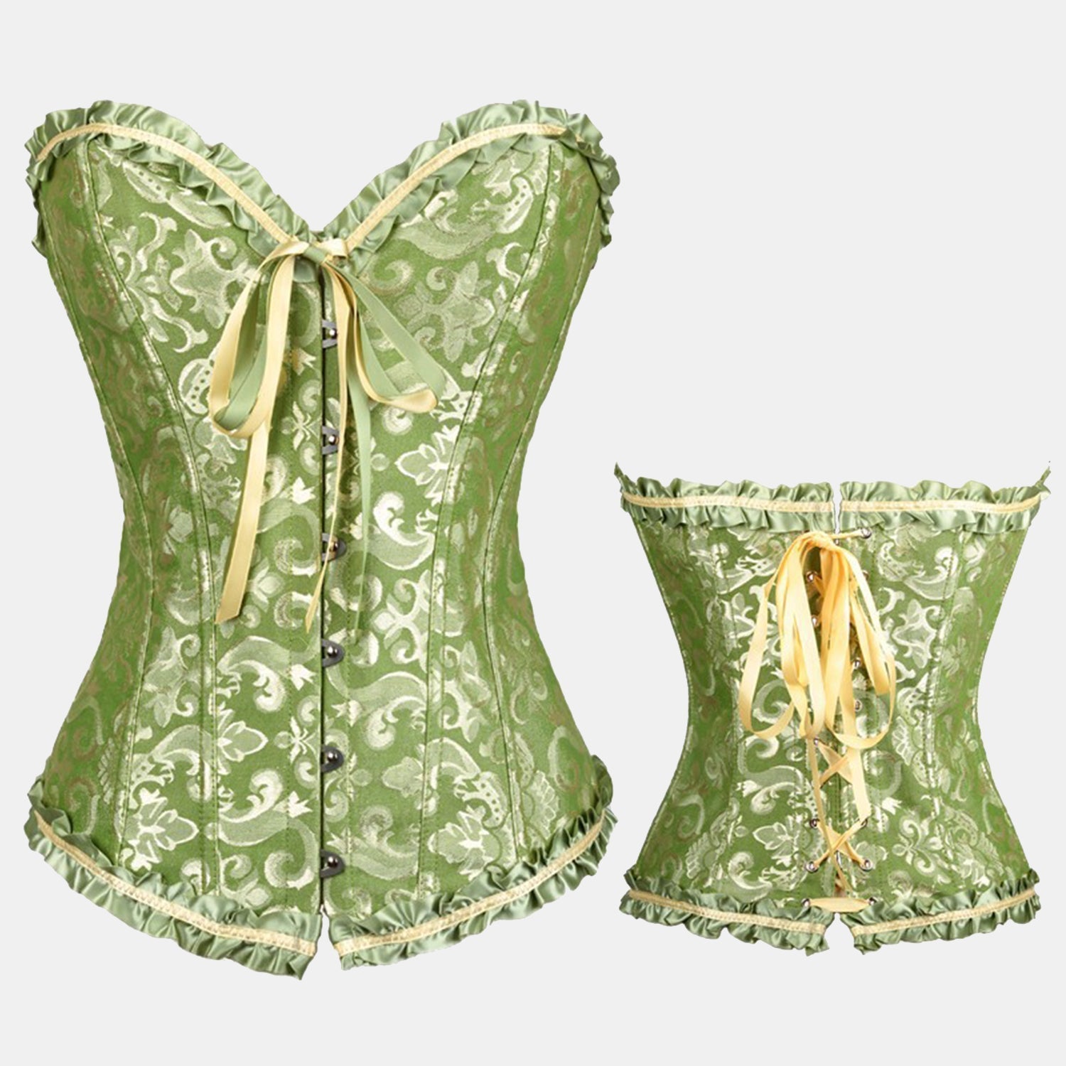 This stunningly overbust is the perfect corset to celebrate your love of Gothic and Steampunk style. Fetching ruffles along the bustline and across the hem add a touch of femininity and all this is topped off with a pretty bow at the centre of the bustline. Pair it up with a pair of jeans or a long flowing skirt depending on your preference and the style you wish to create. It features with the printing pattern. flexible boning to support. It fully show the lines of the waist and chest. Its overbust design beautifully sculpts the silhouette. offering excellent support and a flattering hourglass look.
