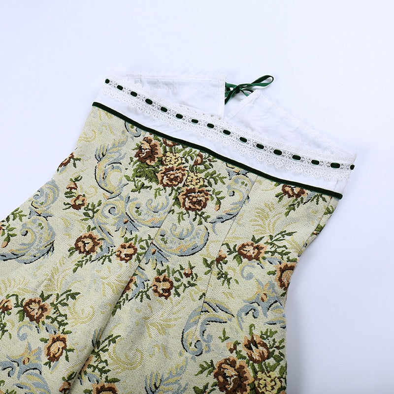 Spoil Me Vintage Corset Style Mini Dress is a strapless corset style dress with a front closure featuring a lace detail bust.